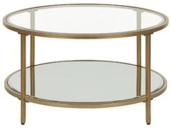 Decorate your living room with this stylish coffee table to instantly add a modern vibe to the space. The piece’s tabletop is made out of durable tempered glass, while its frame is crafted out of iron, making the table long-lasting. The coffee table also features a shelf, where you’ll be able to place smaller trinkets, decorations or newspapers. What is more, the shelf features a mirrored finish for an extra sophisticated look. Thanks to its shape, and design, you won’t have any problems matching this furniture with various decor styles.